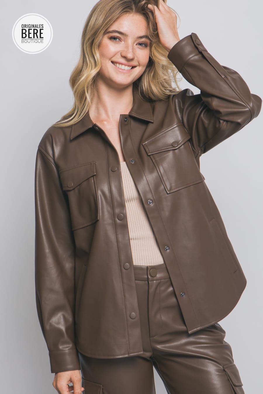- Cuero vegano, libre de crueldad animal, forrado y bolsillos delanteros/laterales